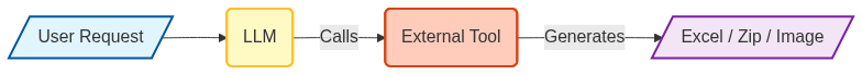 I personally have asked the LLM to generate zip files containing code and folder structures. I’ve asked it to generate Excel files. I’ve asked the LLM to generate plots and it has been able to do all that! These examples had me scratching my head because I thought an LLM only generates text.